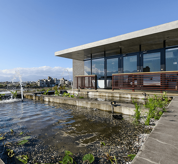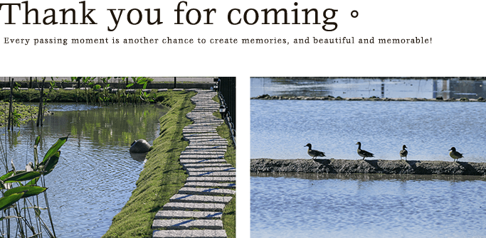 佔地約五百坪的空間裡,包含水生植物池,開闊的視野,冬日鄰近水田是候鳥水鴨的樂園,